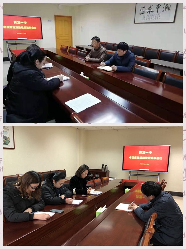 2020年12月22日下午,青浦一中柔性流动名优教师述职会议在学校第一会议室召开,阮黎萍、邵秋芳、邹一凡、盛文燕等老师参加述职,秦剑钧副校长出席。会议由教科室主任王根章老师主持。